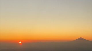 本日帰福の飛行機の中から、夕陽と夕焼けに包まれる富士山を撮影できましたので投稿させていただきます。