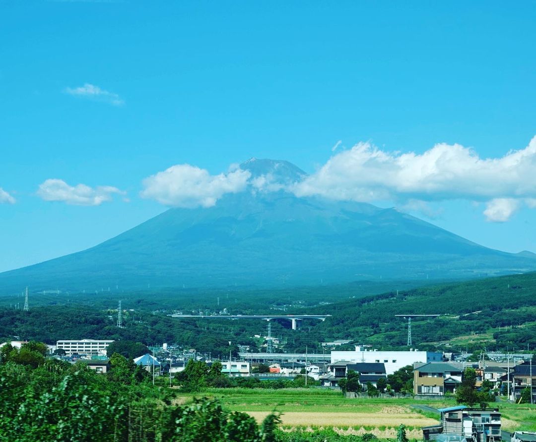 しもの六太通信明日、浜松市で開催される「ひきこもり支援のイベント」に出席するため、東京から浜松市に向かう途中富士山を撮影させていただきました。青空の下で青い色の富士山がとても美しく感じました。