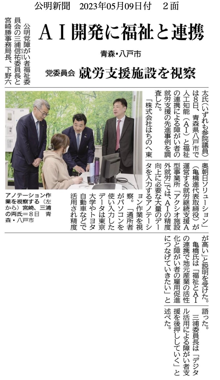 2023年5月9日 青森県視察:AIによる障害者就労支援