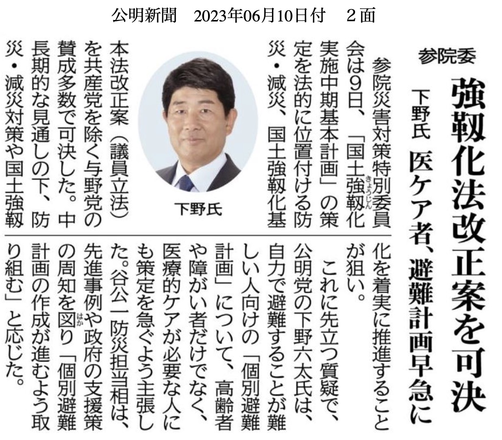 2023年6月10日 参院災害対策特別委員会:防災減災国土強靭化基本法改正案