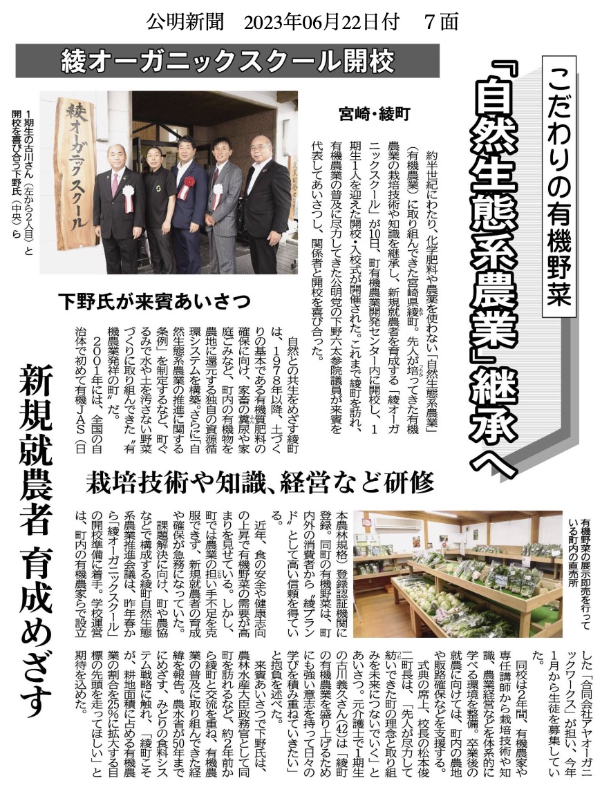 2023年6月22日 宮崎県綾町視察:綾町オーガニックスクール開講
