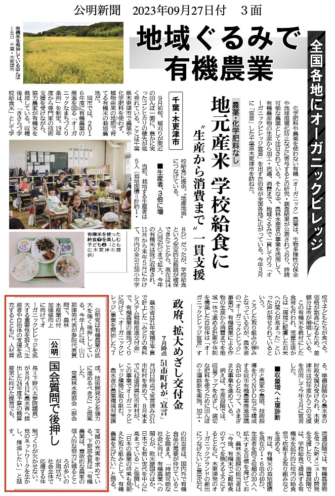 2023年9月27日 有機農業の普及促進:オーガニックビレッジ