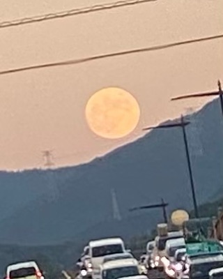車の中から一瞬のできごとでしたので、「あっ、月がきれいだ!」とすぐに写真に収めましたが、斜めになってしまいました。